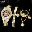 Snowflake Pattern Watch Luxury Full Rhinestone Jewelry Five-piece Set